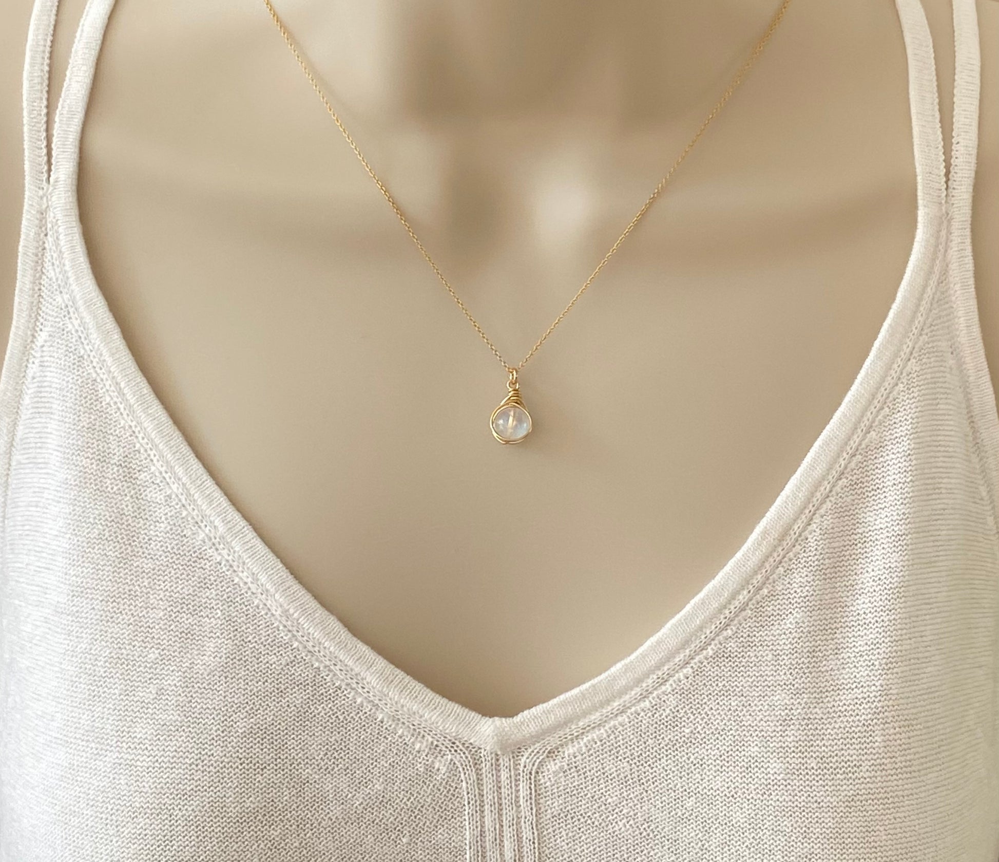 14K gold filled chain. Natural blue flash moonstone. Suitable for sensitive skin.